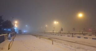 ارتفاع برف در محور کامو در شهرستان کاشان به حدود ۳ متر رسید