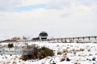 ارتفاع برف در محور کامو در شهرستان کاشان به حدود ۳ متر رسید