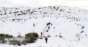 ارتفاع برف در محور کامو در شهرستان کاشان به حدود ۳ متر رسید