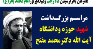 کرمانشاه – همزمان با میلاد پرنور امام محمد باقر (ع)، مراسم بزرگداشت شهید حوزه و دانشگاه، آیتالله دکتر محمد مفتح، روز یکشنبه ۳۰ آذرماه در حیدریه امیرالمؤمنین (ع) کرمانشاه برگزار خواهد شد. به گزارش خبرنگار مهر، مراسم بزرگداشت شهید آیتالله دکتر محمد مفتح با حضور علاقهمندان به ایشان و جامعه …